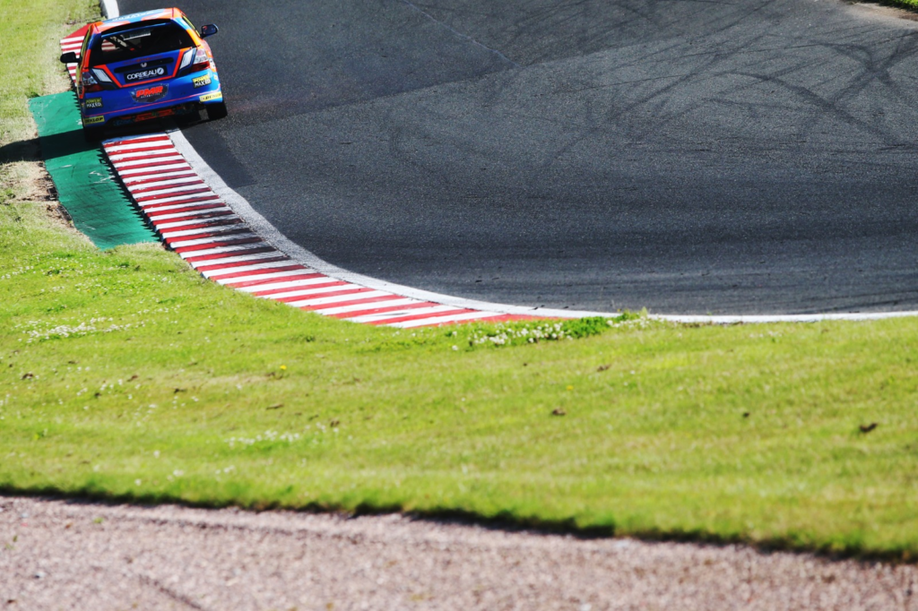 Warm weather and a spicier Milltek Civic Cup title battle welcomed the drivers to Oulton Park for the third race weekend of the season. Practice would see title leader Alistair Camp lead proceedings, setting a 1min 36.612 to put his grey and pink Civic in prime position heading into qualifying.