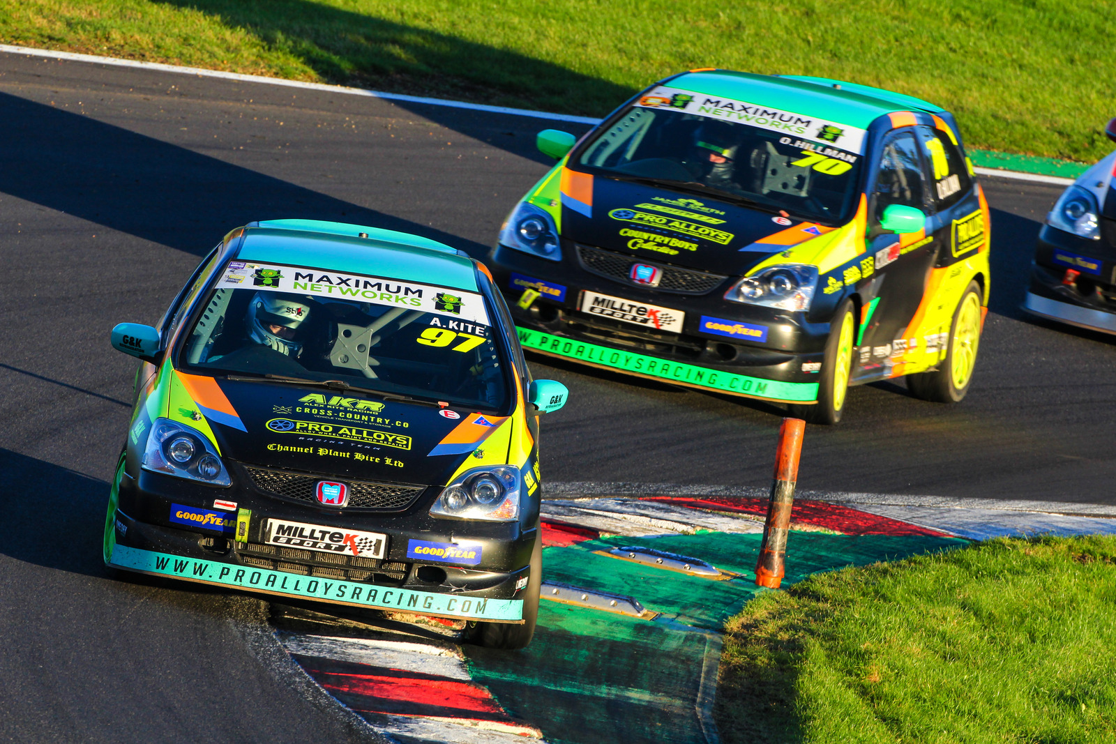 Over the next few laps, Edmundson picked off Marshall, Bensley and then Camp to run third. Next the Durham youngster set about reeling in the leading pair of Pro Alloys cars. It didn’t take him long to eliminate the gap and then cut back inside Hillman to take second at Paddock Hill Bend on half-distance. A lap later he dived inside Kite to grab the lead at the same corner.